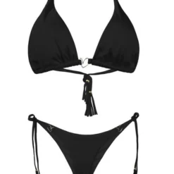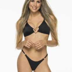 Liliana Montoya Bikini Camelia Black Shiny Top & Bottom Bikini Swimwear Set
