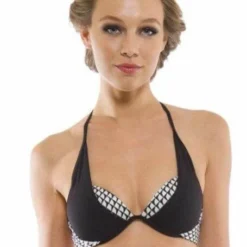 - Bottom has side ties on sides and a Brazilian cut with center scrunching detail