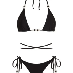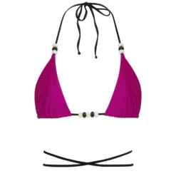 Feel sexy and comfortable in this timeless triangle top with a modern twist. It’s reversible, so it will give you an option of two colors depending on your mood, featuring Marano glass accessory beads and long ties at the waist.