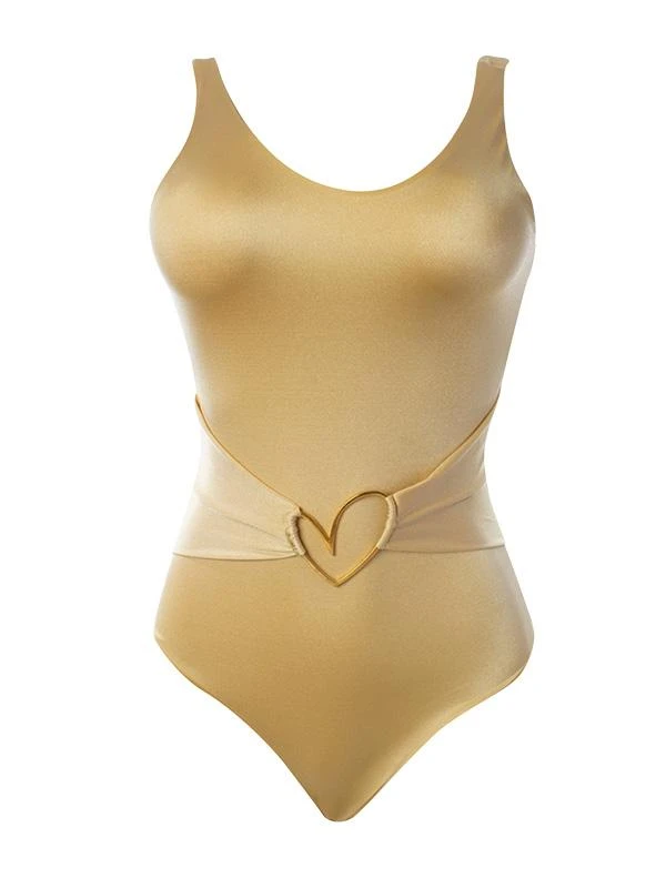 You will look gorgeous in this one-piece trikini with its exquisite cut and design with removable padding that has beautiful adjustable straps, the signature Montoya gold heart belt connector, and the low back features a cheeky cut. This Liliana Montoya set features the earth-friendly GAiA fabric using recycled materials to ensure a better environment for the future. This is a must-have!!