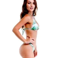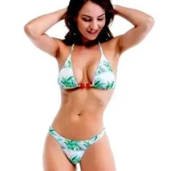 This gorgeous floral print on the Nice thong bikini is a perfect combination. The triangle top features string ties around the neck and the back to ensure a proper fit along with gold and red bead embellishments. The classic thong bottom features very cheeky rear coverage. This set is a must have!!