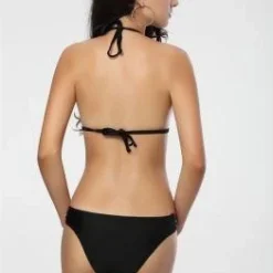 A stunning bikini with rose gold chain straps that drape elegantly around the shoulder. The low-rise bottom has a single rose gold chain straps that match with the beautiful top.