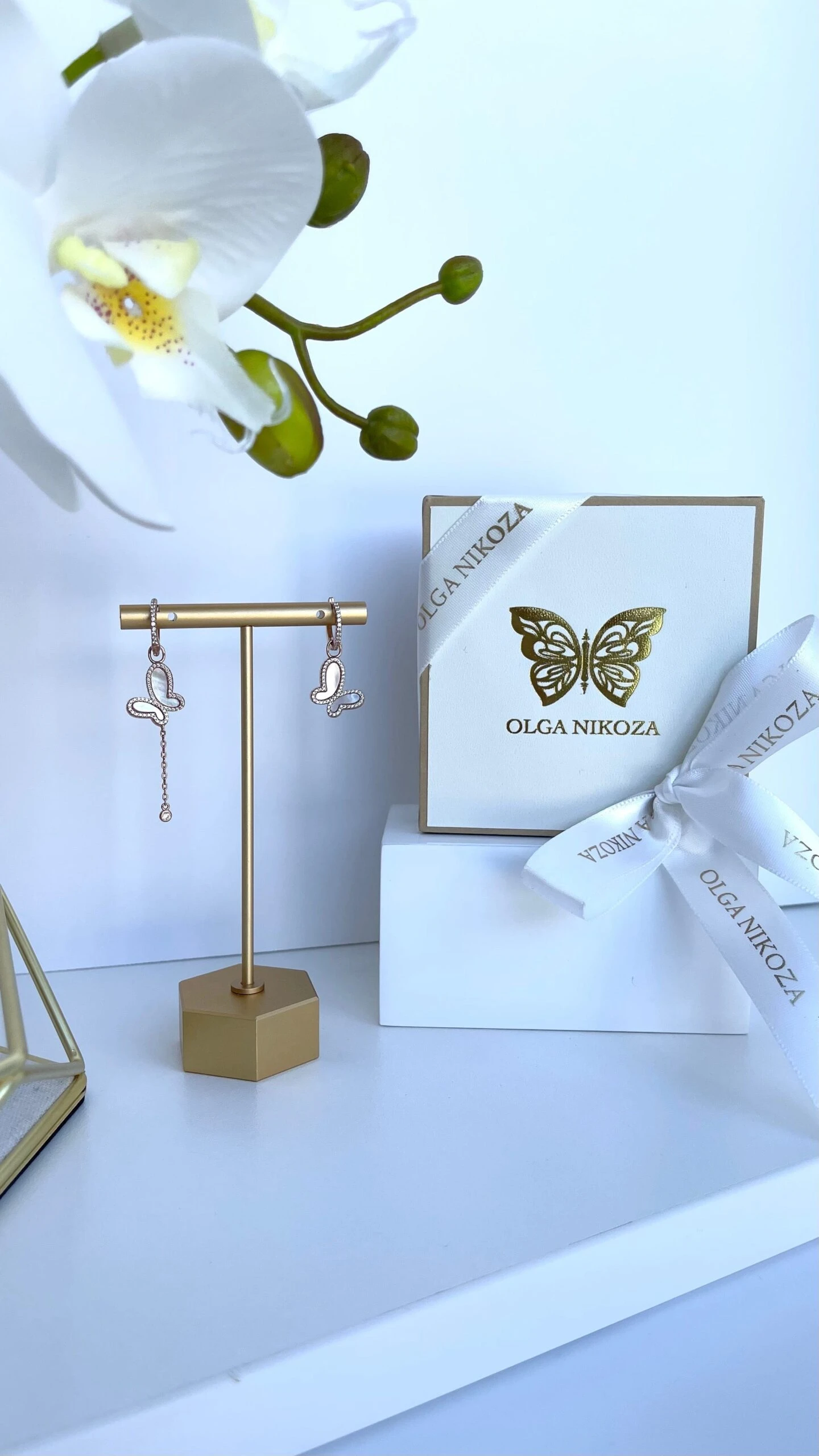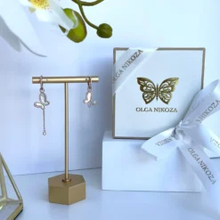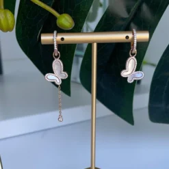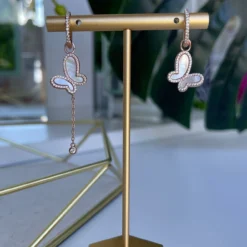 Gorgers Rose Gold mother of pearl earrings. Could be worn two ways with or without butterflies.