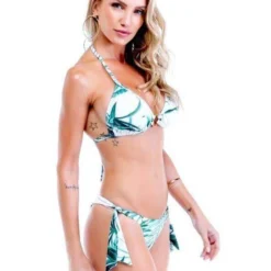 Feel nature in this beautiful Saona Set. The triangle top features gorgeous bamboo ring connector embellishment in the front. The side tie cheeky bottoms feature a beautiful scrunch ruching for cheeky rear coverage. This set is amazing!!