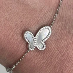 Simply Gorgeous! Silver butterfly bracelet with mother of pearl wings, encrusted with CZ.