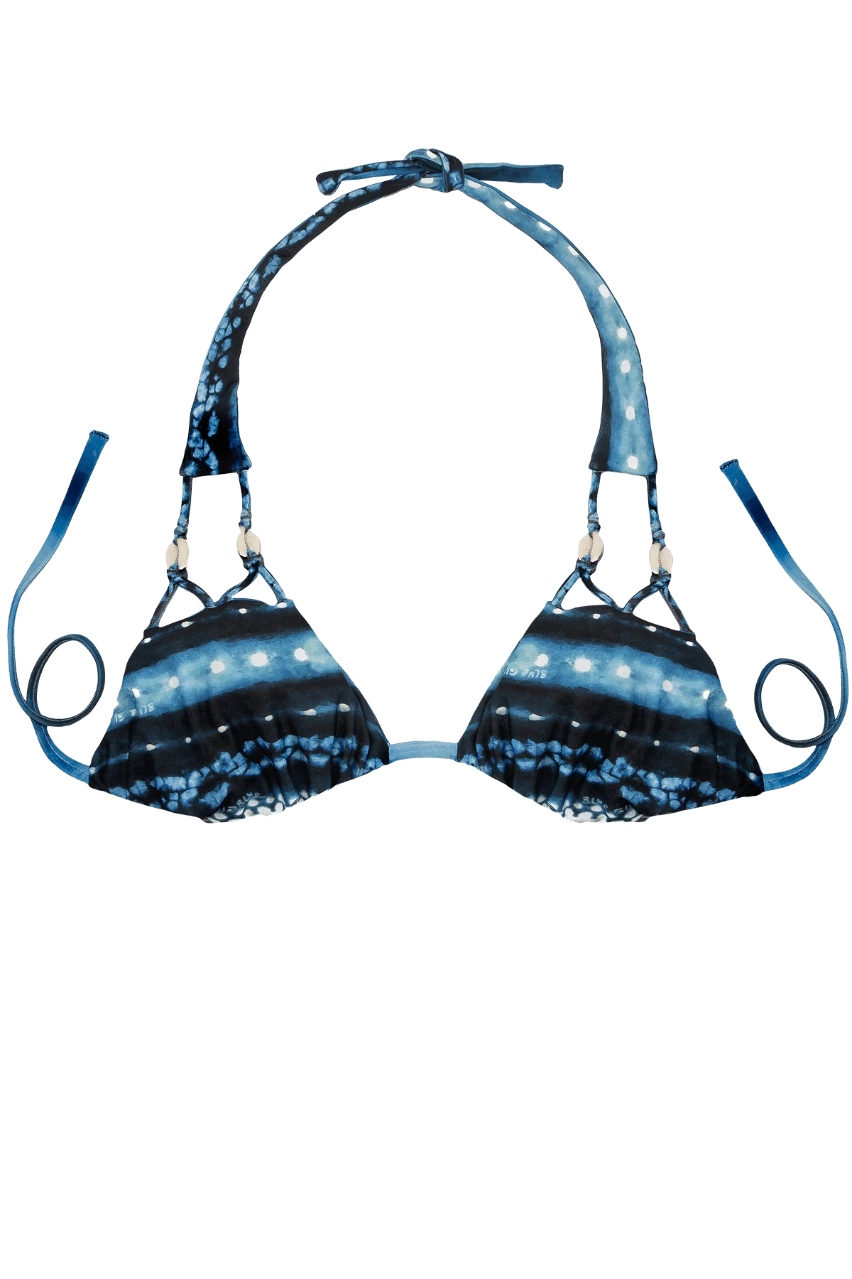 fully reversible 2 n’1 bikini top for 2 different looks, printed and tie-dye