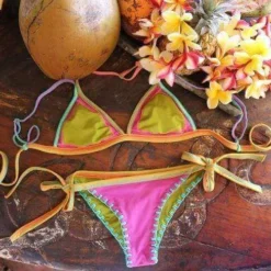 Designed to look ravishing, this multi-colored reversible bikini set is purposed to pump up the heat on the beach and beyond